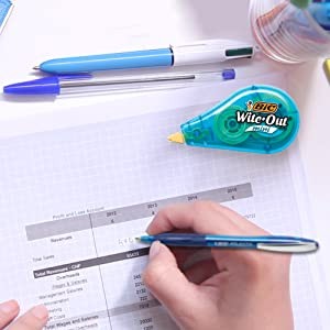 With its compact design and brightly-colored dispenser, BIC Wite-Out Brand Mini Correction Tape is a fun and handy correction tool that makes a perfect addition to your home or school supplies. The correction tape goes on dry, allowing you to write over with no mess and no waiting time! The strong white tape dispenses in a single white line to cover ink, marker, and more, so you can easily make corrections to your notes and documents.