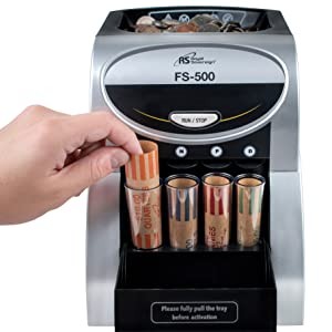 Counting and sorting by hand can be tedious. The FS-500 sorts up to 156 coins per minute. Place the coins into the large hopper and watch the coins rapidly sort into their respective tubes. The FS-500 is a must-have for consumers looking to save time and frustration from counting by hand.