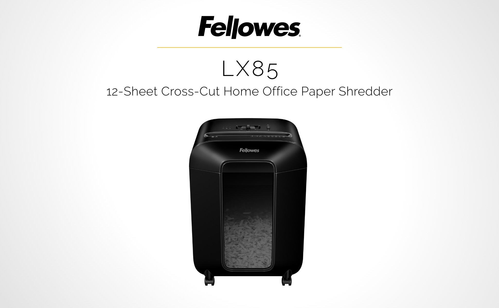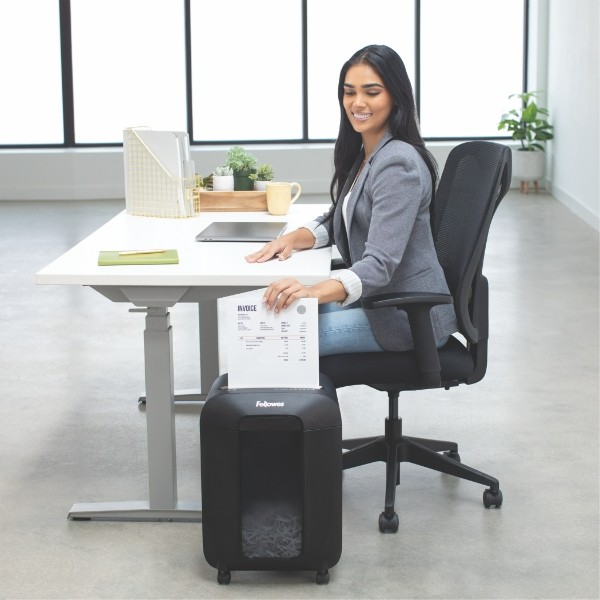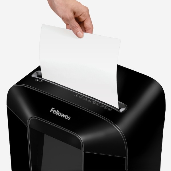 The Fellowes LX85 12-Sheet Cross-Cut Shredder features an ultra-efficient deskside shredder with the ability to shred 12 sheets per pass, as well as staples, paper clips and junk mail, into cross-cut particles (5/32" x 1-1/4") for up to 20 minutes before a cool down period is needed. Designed to combine powerful shredding with intuitive usability. Auto Reverse Technology which automatically stops and reverses paper jams.