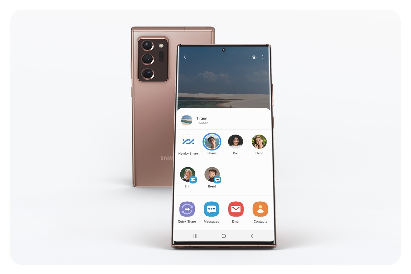 With point to share technology, you can share information directly with other compatible Samsung devices. Simply select the pictures, videos or documents you want to share, then point your Galaxy Note20 Ultra at your friend's device and tap Share. Keep track of what’s important with precision—locate15 tagged objects with ease with spatial and directional awareness. From lost car keys to tagged items in a warehouse, it can help you find what is important. In the future you will be able to use your phone as a digital key. Unlock home, buildings or access your office—secure and handsfree.