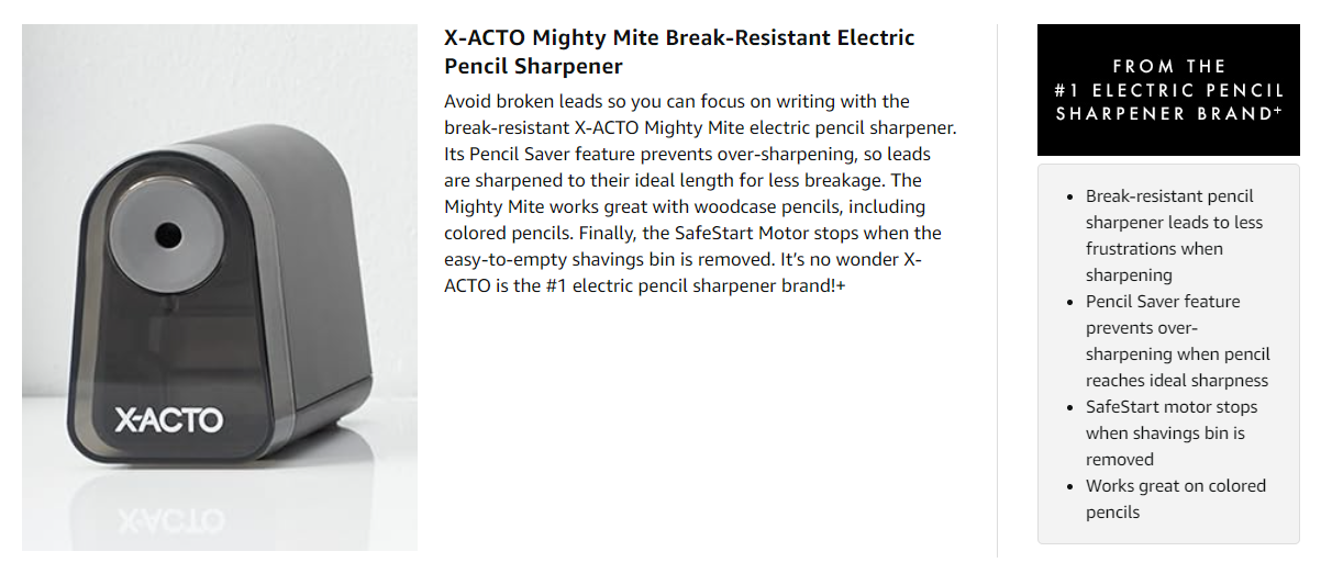 With the SmartStop feature that sharpens woodcase pencils to their ideal sharpness, the Mighty Pro makes lead break resistant. A LED light even tells you when sharpening is done.