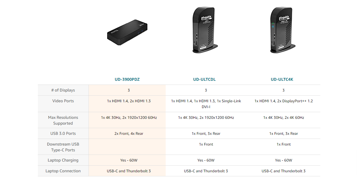 The UD-3900PDZ provides 60W charging to laptops that support Power Delivery via their USB-C / Thunderbolt ports.