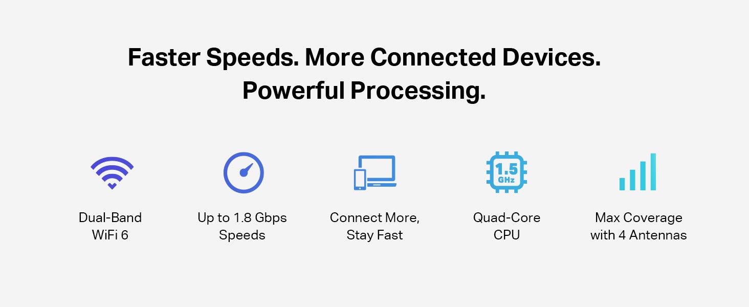 Super-fast speeds up to 1.8 Gbps and a powerful 1.5 GHz CPU mean the ultimate buffer-free 4K/HD streaming and gaming experience even with all your smart home, mobile, and other electronic devices connected to your network. [2]