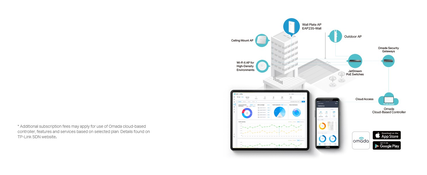EAP235-Wall provides boosted WiFi speeds up to 1200 Mbps with Beamforming. Experience long-range coverage with advanced wireless technologies like Load Balancing and Band Steering optimizing the whole network to improve performance and efficiency.