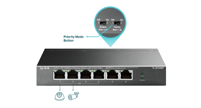 Guaranteed quality of sensitive applications, like video monitoring in critical business areas, using one-touch Priority Mode, which offers higher priority options for ports 1–2.