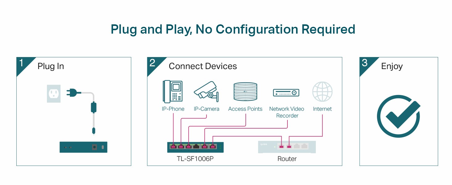 The interior components of TL-SF1006P are protected by a high-quality metal casing to ensure a long product life. Having passed an array of stringent reliability tests, TL-SF1006P delivers switching performance you can depend on.