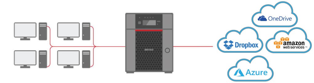 The TeraStation 3020 makes it simple with integrated support for leading cloud providers such as Microsoft Azure, OneDrive, Amazon S3, Dropbox and Dropbox Business. This functionality provides a way to backup your mission-critical data to an offsite backup tool. Offsite backup, such as a cloud server, adds an extra layer of protection against data loss due to environmental disasters or equipment trouble or theft at your primary location.