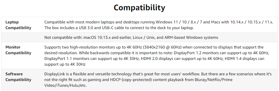 This adapter has two HDMI 2.0 ports and two DisplayPort 1.2 ports, and is backwards compatible with previous HDMI and DisplayPort specifications at lower resolutions.
