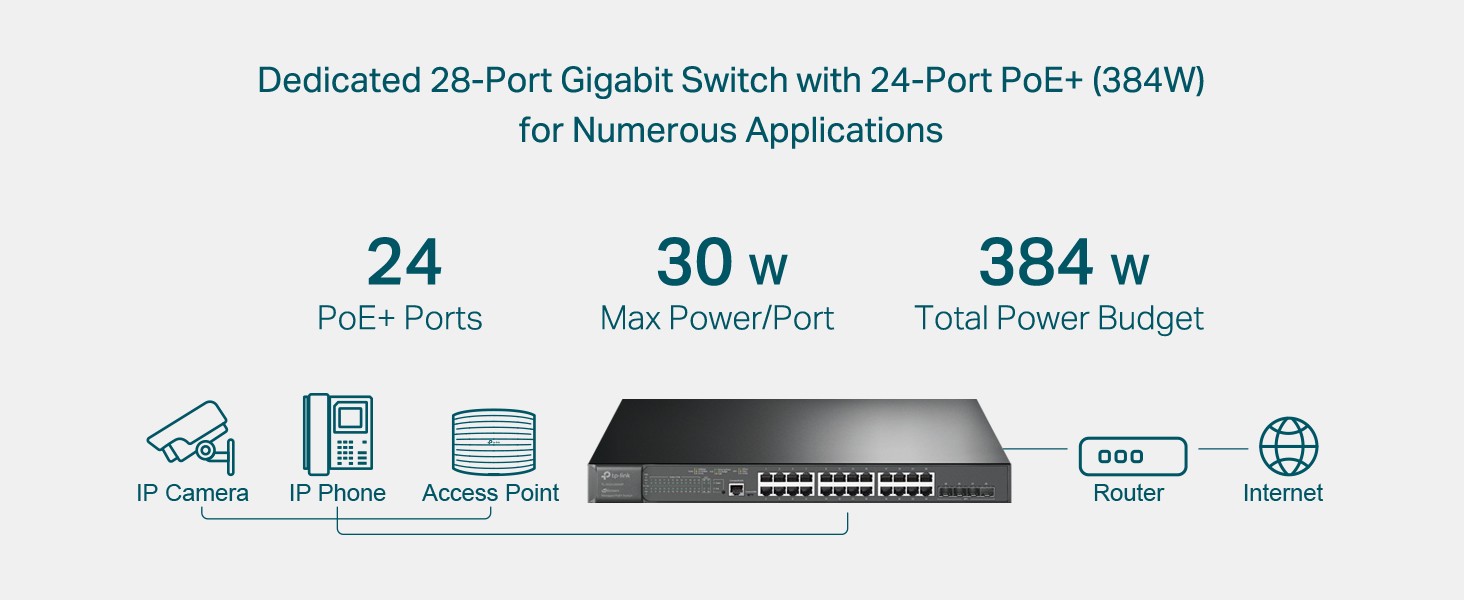 Robust security features including IP-MAC-Port-VID Binding, Port Security, Access Control Lists (ACL), and 802.1X authentication defend against a range of network threats.