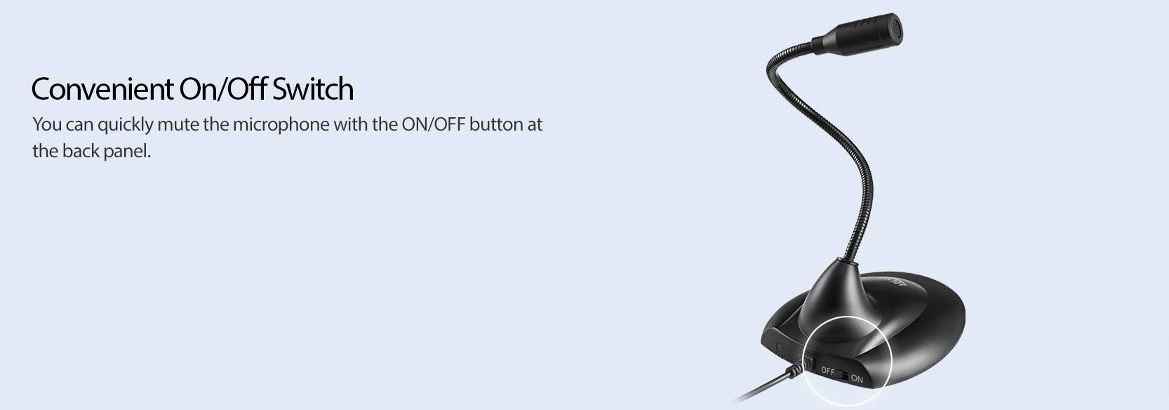 Located on the back panel, you can quickly mute the microphone with the ON/OFF button.
