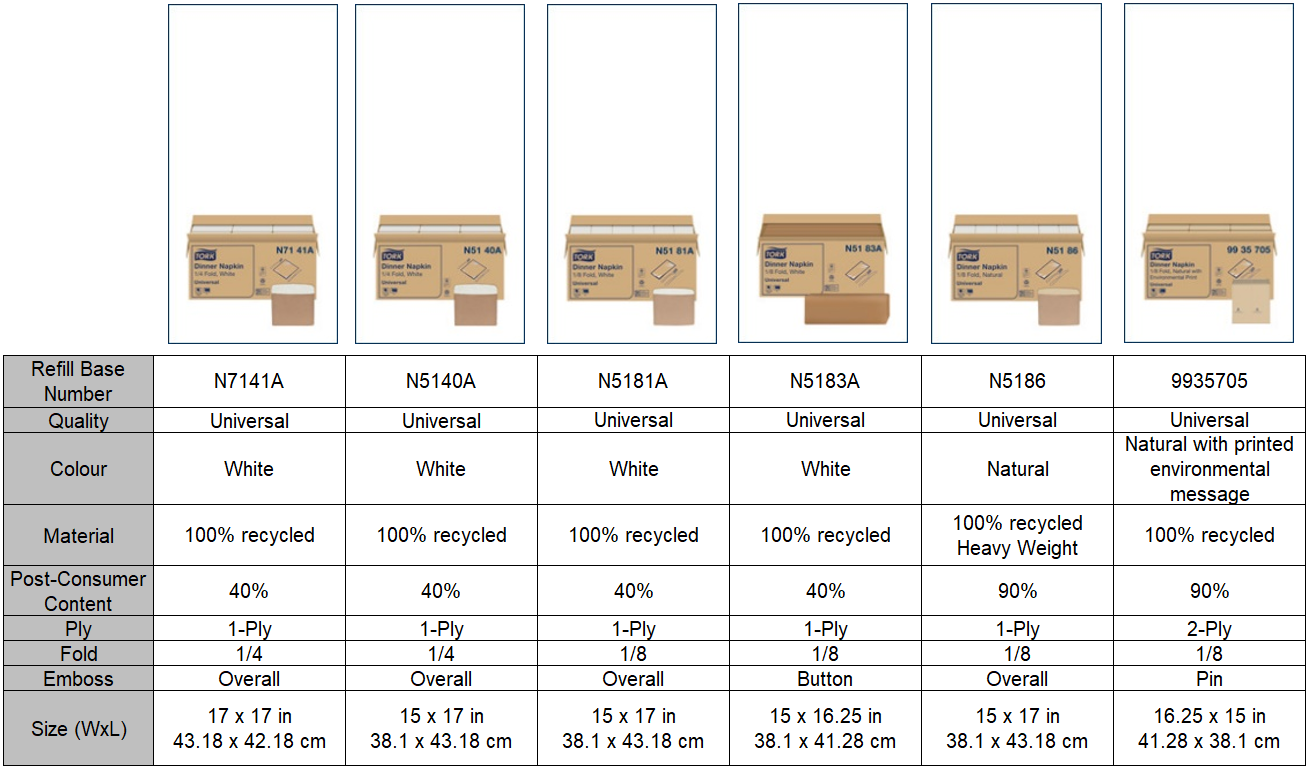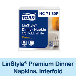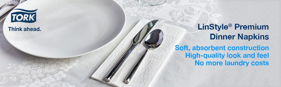 Tork LinStyle Dinner Napkins add an elegant touch to your establishment. They deliver the feel of linen without the cost. With these cloth-like napkins, you can avoid laundering and replacement costs without compromising on quality. Premium Dinner Napkins are stronger, bulkier, and more absorbent than traditional paper styles, too. Custom printing allows you to personalize the napkins to suit your establishment’s needs.