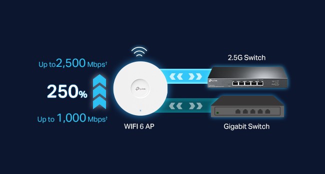 The best option to meet the full bandwidth potential of WiFi 6 access points with 2.5G wired connections.