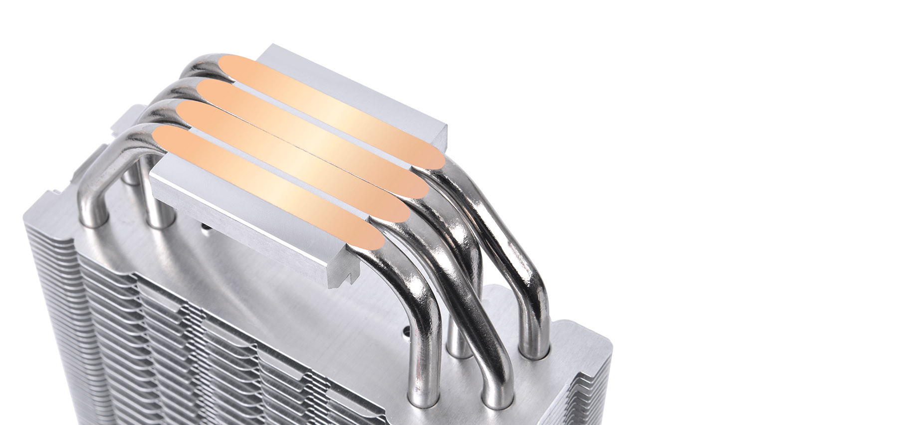 TOUGHAIR 310 is a single tower designed air cooler with 4 heat pipes running through the fins, the U-shape heat pipes increase heat circulation creating better heat dissipation in your system and supports up to 170W.