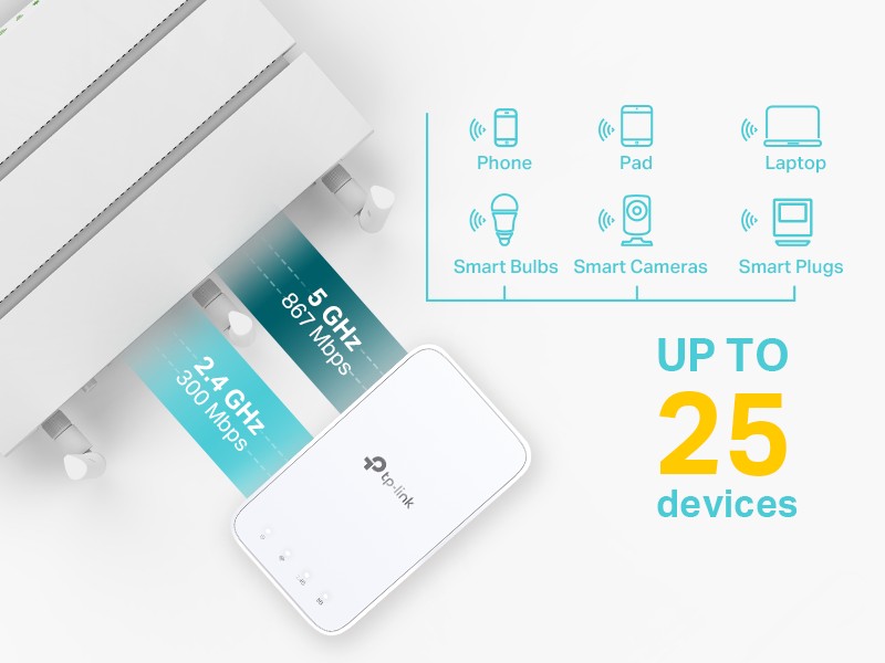 Compatible with all WiFi-enabled devices, routers, and access points, the dual-band RE330 can connect up to 25 devices that are out of range from your router.