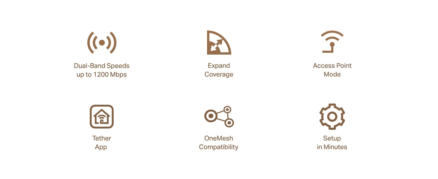 The RE330 expands your current WiFi coverage with speeds up to 1200 Mbps using two specially designed internal antennas, perfect for web browsing and watching content online.