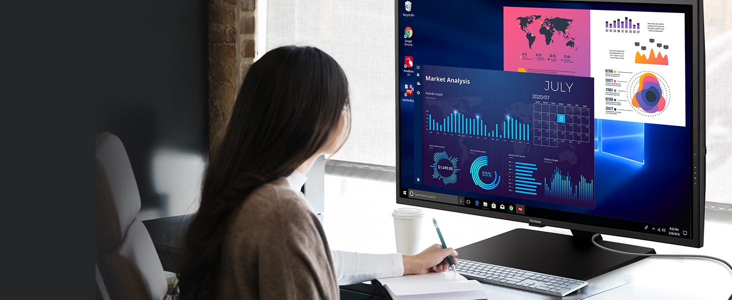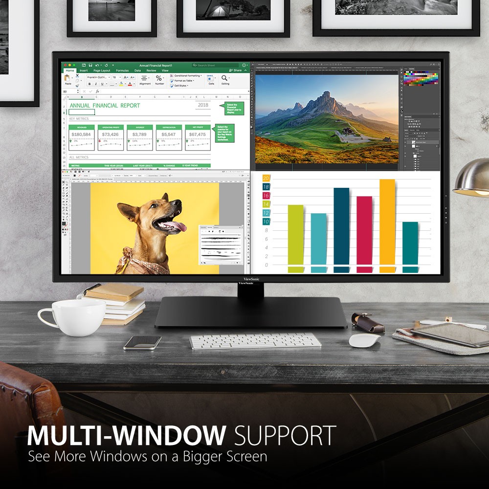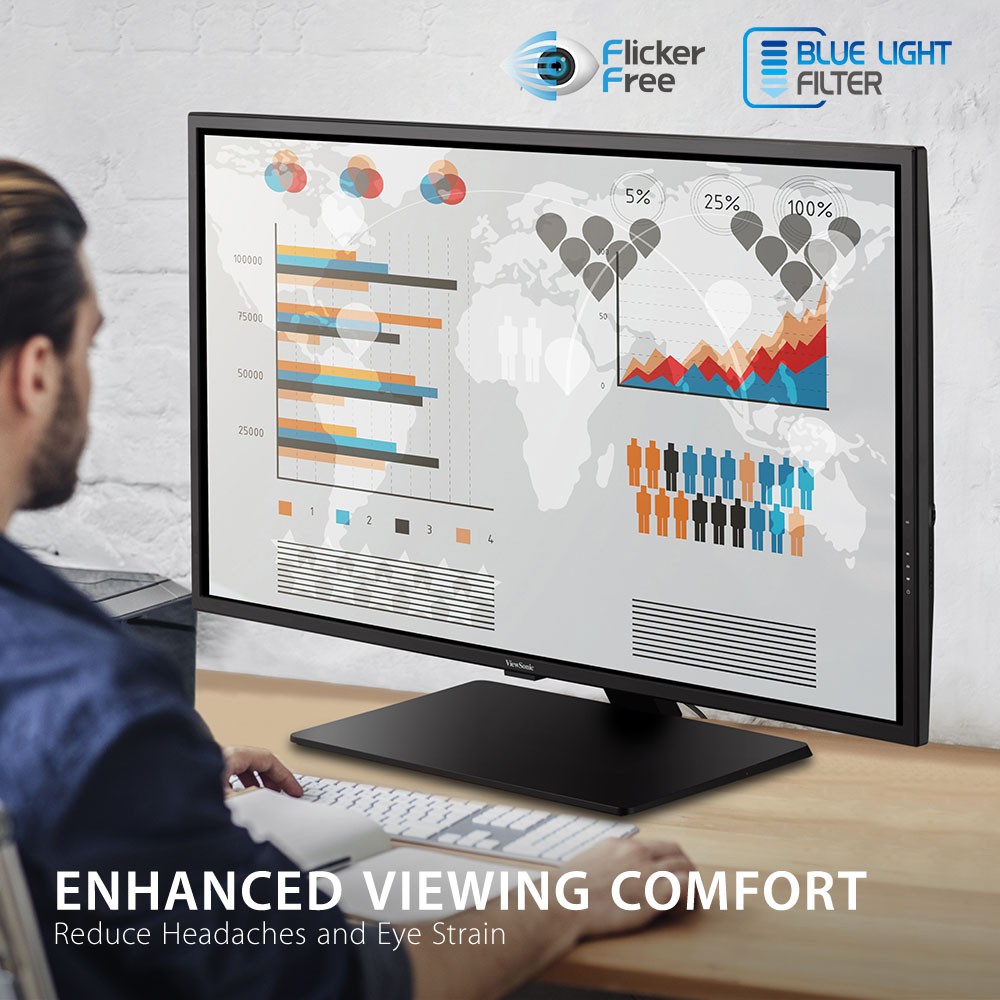 Designed with productivity in mind, the ViewSonic ® VX4381-4K combines incredible 4K resolution, a sleek narrow-bezel design, and an expansive 43” (42.5" viewable) screen so you can see all and do all from a single monitor. Featuring an MVA panel and 3840x2160 resolution, this monitor offers best-in-class screen performance with incredibly sharp and detailed visuals, while HDR10 content support delivers a high dynamic range of vivid color and contrast. Flexible and versatile for any office application ranging from document editing to graphic design, the VX4381-4K includes connectivity options such as DisplayPort 1.4, mini DisplayPort 1.4, DisplayPort Out, HDMI 2.0, and 3-USB ports. ViewSonic’s MultiPicture™ functionality allows for efficient multitasking by providing simultaneous viewing of up to four split windows, while full ergonomic functionality delivers maximum comfort and enhanced productivity. With an energy-saving Eco-mode feature and ViewSonic’s industry-leading 3-year limited warranty, this monitor is a solid long-term investment, delivering great power savings while boosting productivity for a variety of business applications.