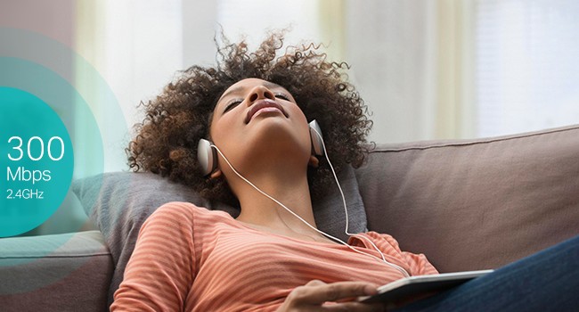 300Mbps* over the 2.4GHz band for casual internet browsing, music streaming and light tasks.