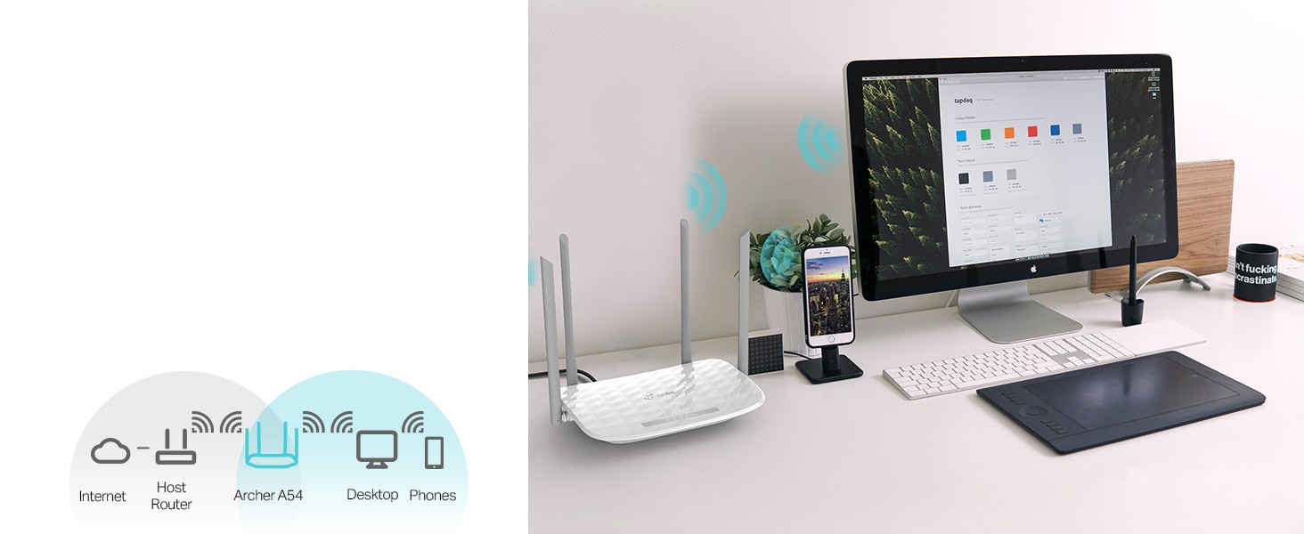 Archer A54 helps your devices achieve optimal performance by making communication more efficient with MU-MIMO technology, two simultaneous data streams, allow all connected devices to achieve faster speeds than standard AC routers.