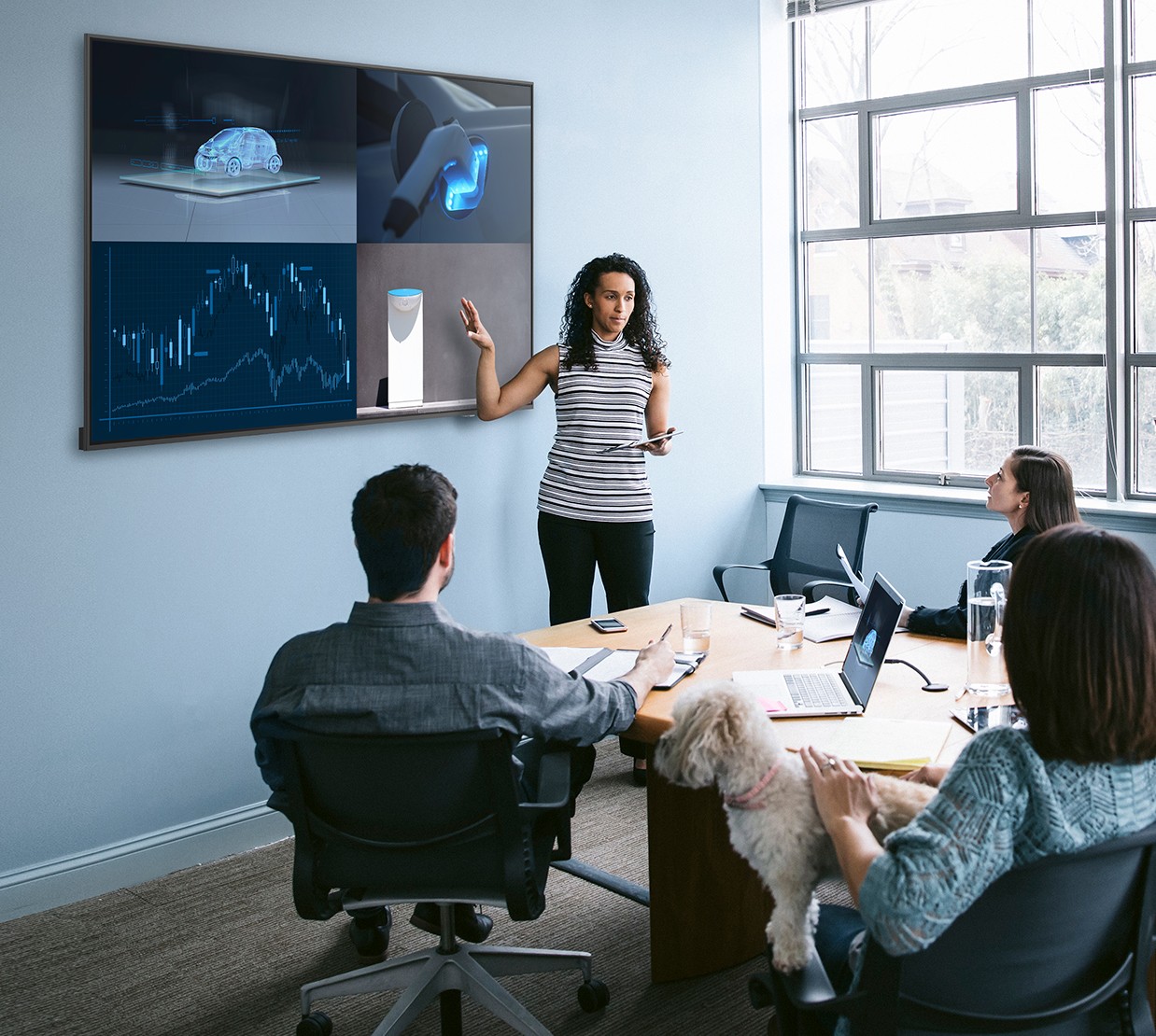 Perfect for conference rooms, huddle spaces and other collaborative environments, this bundle delivers the most useful items businesses need to get up and running with their wireless presentation display. You can quickly install the display with the included wall mount, while the included USB Wi-Fi plug-in module provides a robust and reliable wireless presentation experience.