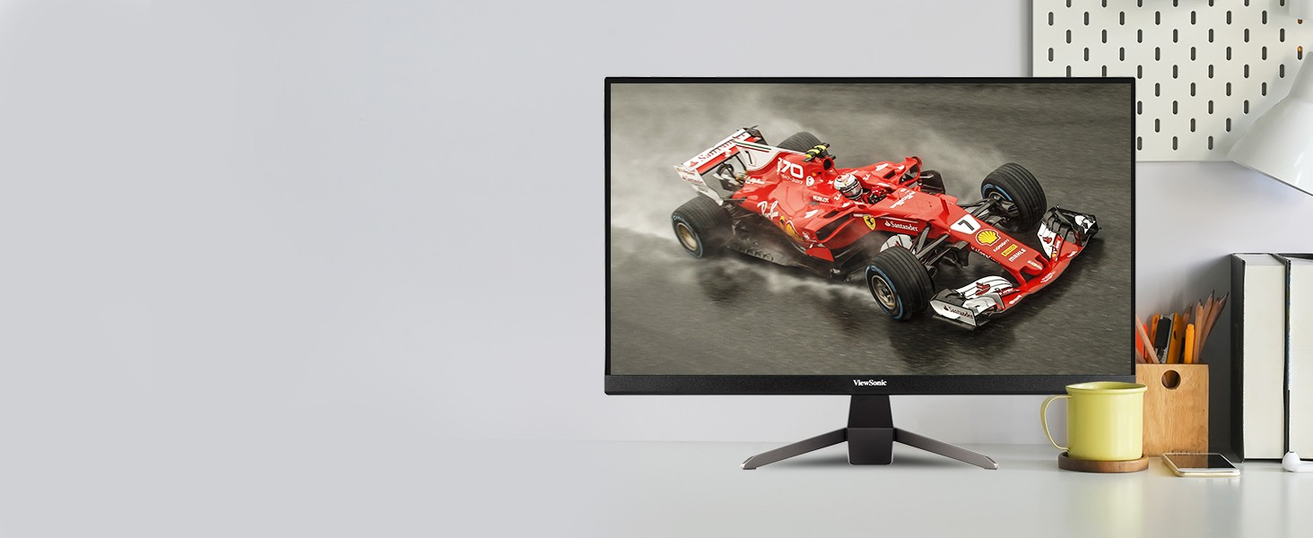 The ViewSonic ® VX2467-mhd is a 24” (23.8” viewable) Full HD price-performance monitor built for gaming and entertainment. Equipped with AMD FreeSync, this monitor’s variable refresh rate capabilities virtually eliminate screen tearing and stuttering for fluid game play during fast-paced action scenes. An ultra-fast 1ms response time (MPRT) provides smooth screen performance free from blurring or ghosting. For a game-winning competitive edge, a Game Mode hot key optimizes gameplay for FPS, RTS and MOBA. On top of that, a black stabilization function helps you target enemies lurking in the dark, while enabling the monitor to maintain brilliantly rich colors and contrast for total immersion. Flexible connectivity options such as DisplayPort, HDMI, and VGA allow you to connect to your dedicated graphics card and gaming console. The VX2467-mhd features all the perks needed to dominate all your gaming and entertainment quests.