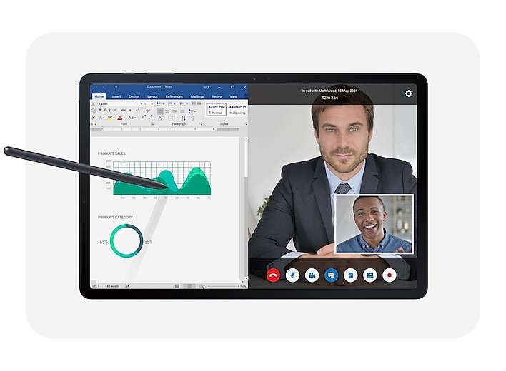Master every task with Galaxy connectivity. Get more done on an expanded workstation that lets you hand off content between your devices, or enjoy a PC-like experience with multiple windows open on your tablet.