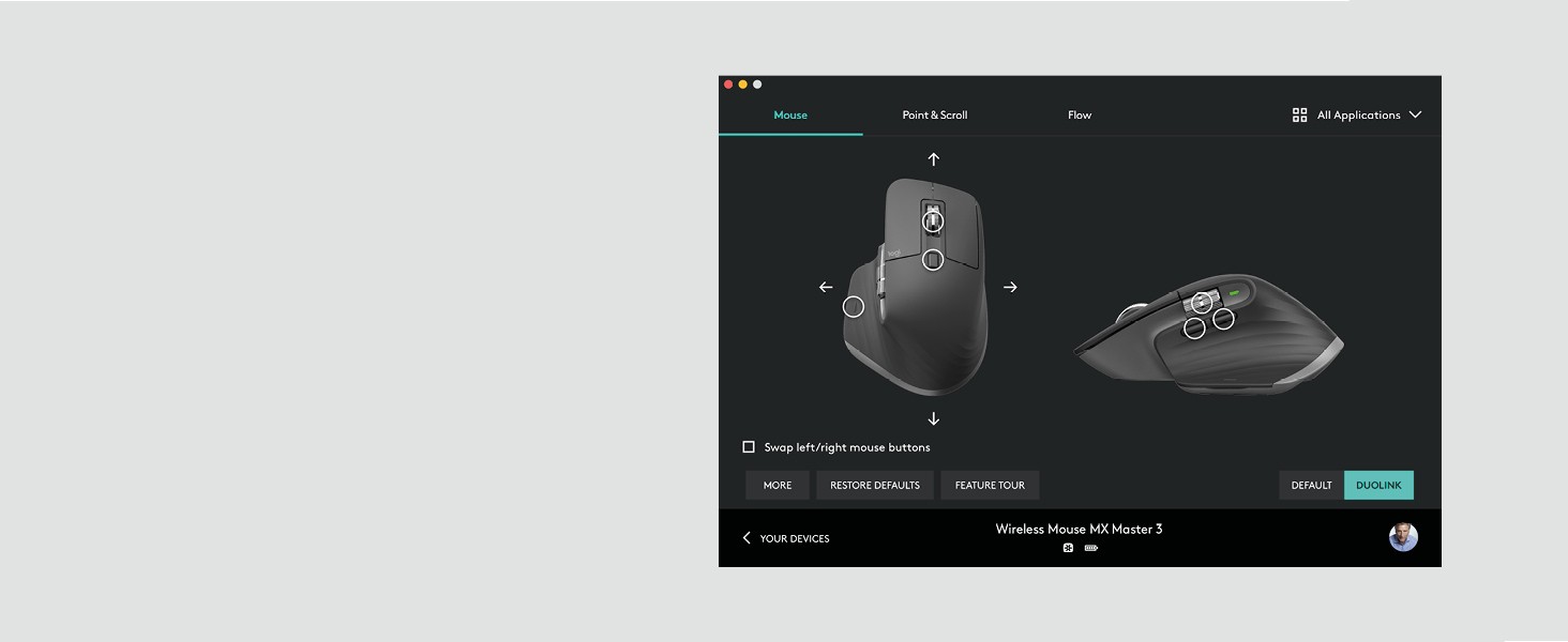Customize MX Master 3 in Logitech Options software and optimize every action for your specific workflow. You’ll get one-tap access to everything you need in the apps you use most