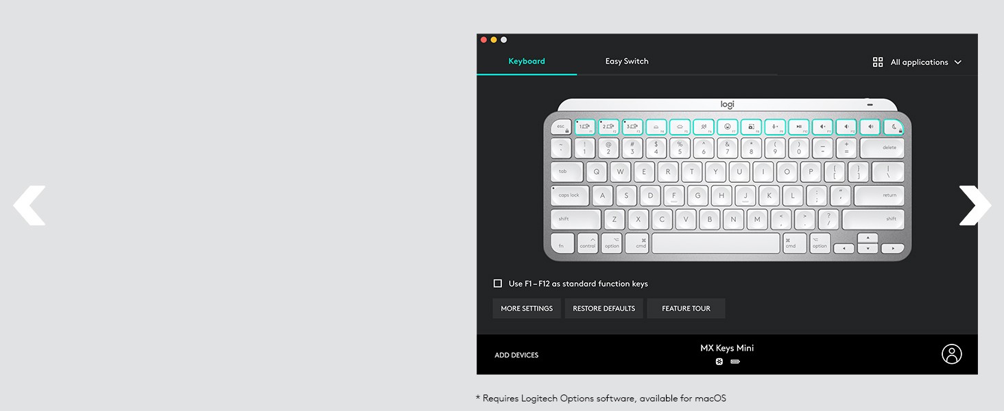 Team this keyboard with MX Anywhere 3 for Mac for more functionality* and design