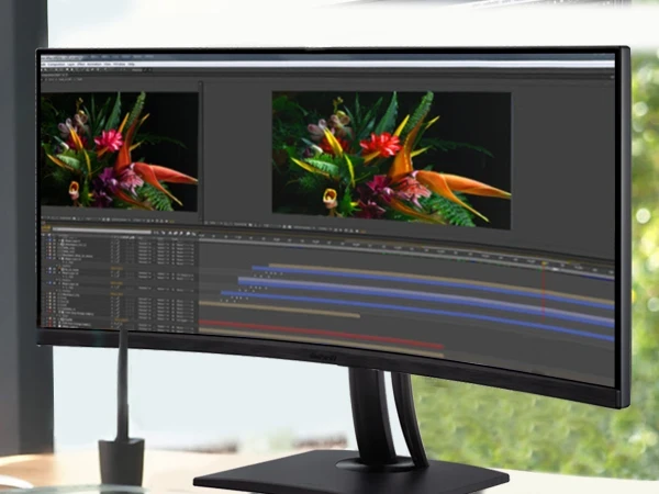 With an immersive curved screen and stunning WQHD+ 3840x1600 resolution, the ViewSonic
