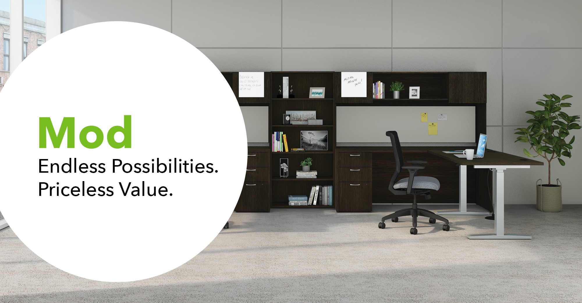 They say it's the simple things in life that mean the most. That's why Mod provides everything you need for a productive and stylish office and nothing you don't. With its versatile collection of laminate desk and storage solutions, Mod offers both variety and value to support all types of workstyles.