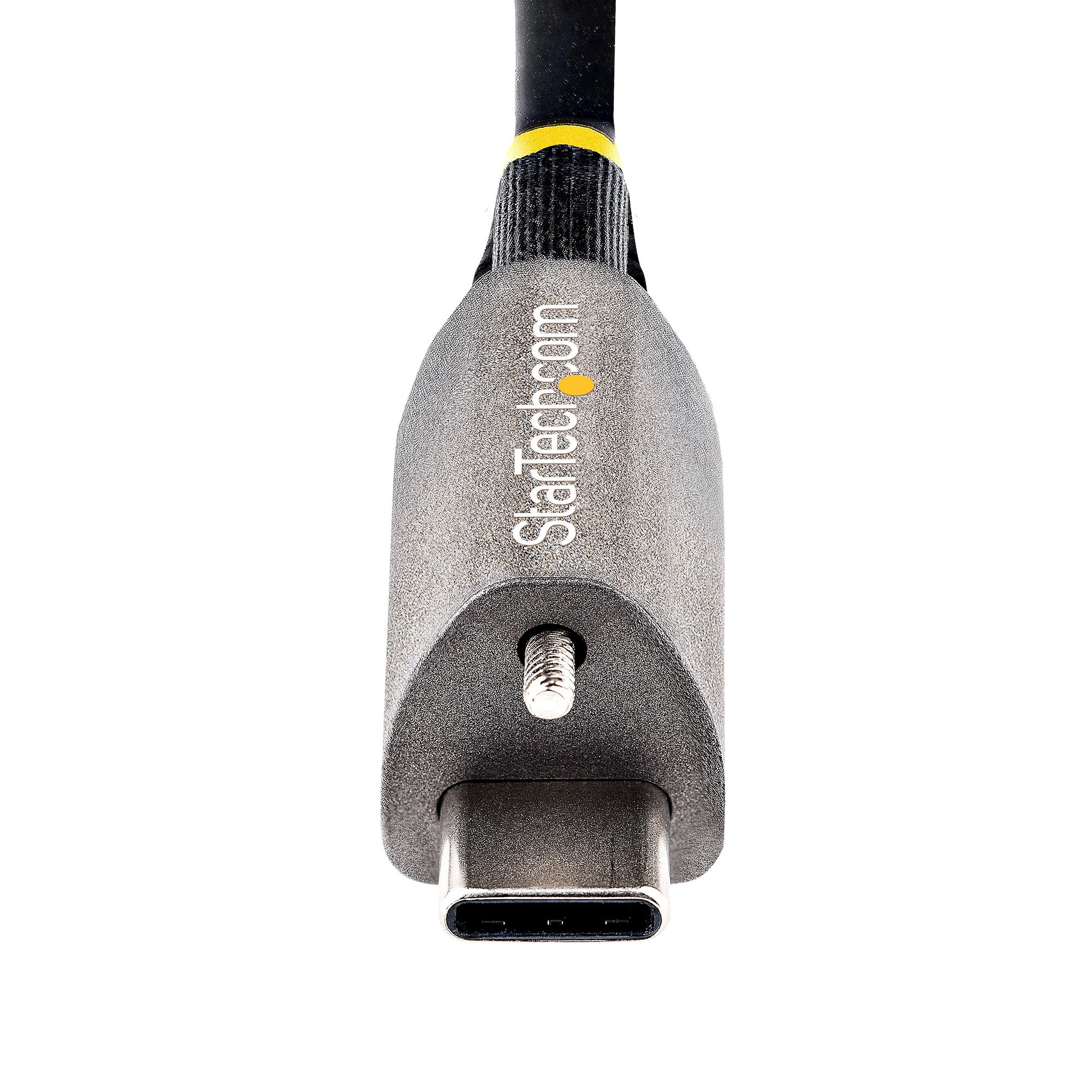 This cable features a single locking screw that can securely connect to your USB-C peripherals and can prevent accidental disconnection from your devices such as external hard drives or docking stations.