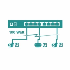 A 100W total PoE power budget on this PoE+ switch supplies up to eight PoE/PoE+ devices with up to 30W per port