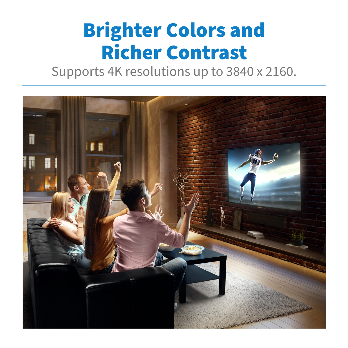 The U444F3-10M-H4K6 supports 4K resolutions up to 3840 x 2160 @ 60 Hz as well as High Dynamic Range (HDR) for richer contrast and expanded color accuracy. HDCP 2.2 compliance and 4:2:2 chroma subsampling allow you to stream 4K content without complications.