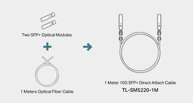 Reduce the complexity of ownership by getting an SFP+ Direct Attach Cable, which is equivalent to Two SFP+ Optimal Modules and an optical fiber cable.