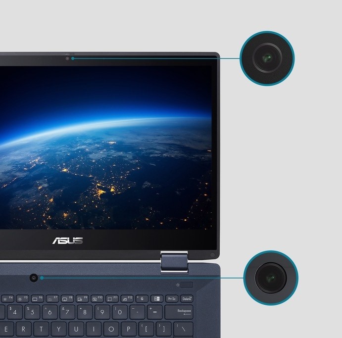 ExpertBook B3 Flip includes a standard webcam along with a special 13 MP world-facing high-resolution camera 1 located just above the keyboard — an ideal position that allows you to capture photos and videos in tablet and tent mode.