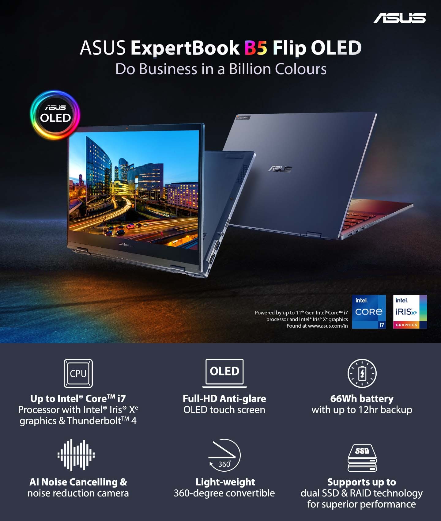 The ASUS ExpertBook B5302 Flip makes all your business tasks seem lighter, powered by up to 11th Gen Intel® Core™ processor, Intel® Iris® X