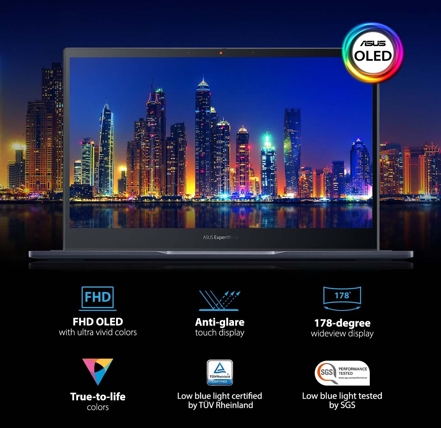The state of the art OLED touch display of ASUS ExpertBook B5302 Flip amazes you with an exceptional experience. Its remarkable NanoEdge display is touch-sensitive, and supports both finger and stylus inputs for an intuitive experience. Its brilliant FHD OLED HDR display delivers exceptionally detailed and realistic visuals, with cinema-grade 100% DCI-P3 color gamut. And with TÜV Rheinland-certified eye care & the Anti-glare functionality the B5302 makes sure your eyes are protected too during your long day of work.