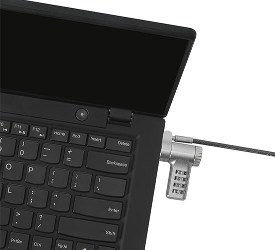 With a unique design for a secured, universal fit, we’ve eliminated the need for interchangeable heads, which means there aren’t heads to lose or replace. This lock fits virtually any lock slot, including Kensington® Nano, Kensington K-Slot, and the oversized Noble wedge-shaped lock slots.