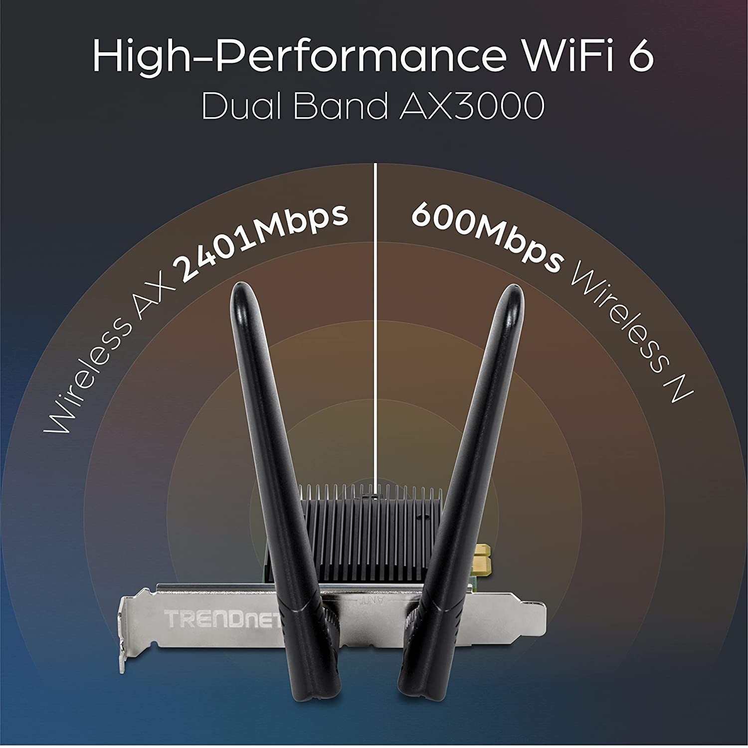 As a WiFi 6 PCIe card, easily connect to an extreme performance 2401Mbps Wireless AX or 600Mbps Wireless N network*