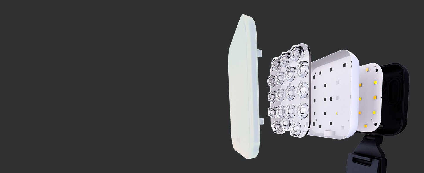Purpose-built for streaming, the frameless diffuser radiates wide, flattering light that eliminates harsh shadows