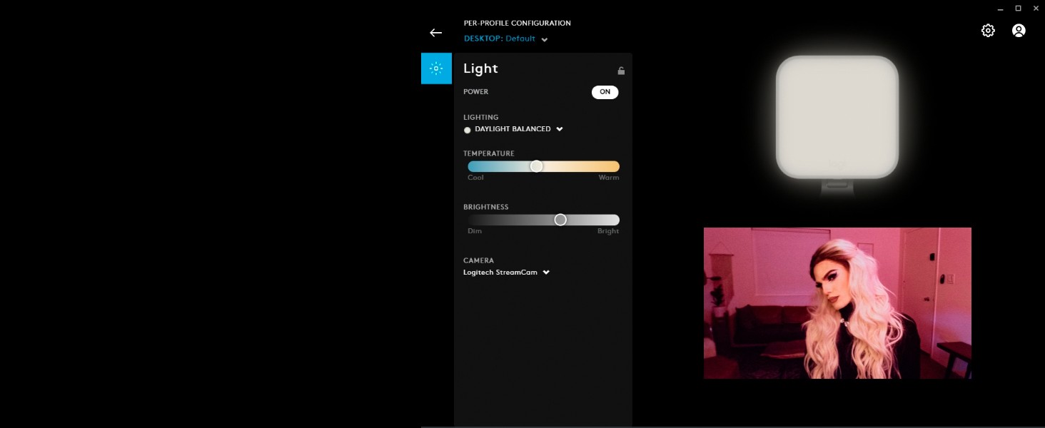 Go from warm candlelight to cool blue with adjustable brightness and color temperature. Control Litra Glow’s settings and save presets with Logitech’s free G HUB desktop app