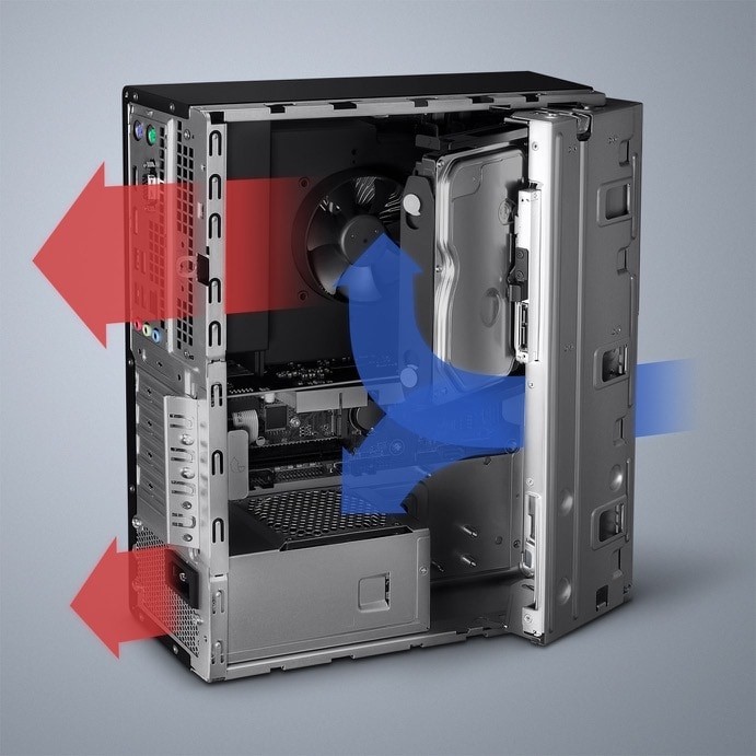 Whether you want to save space, create a tidy workspace, fit more computers into offices or connect more business peripherals, slim and compact ExpertCenter D7 SFF is made for you. To ensure both consistent performance and minimum noise from a small package, we optimized D7 SFF’s thermal design by creating dedicated isolated air chambers for PC’s main heat generators to prevent heat pooling inside — ensuring quiet operation even during its highest performance.