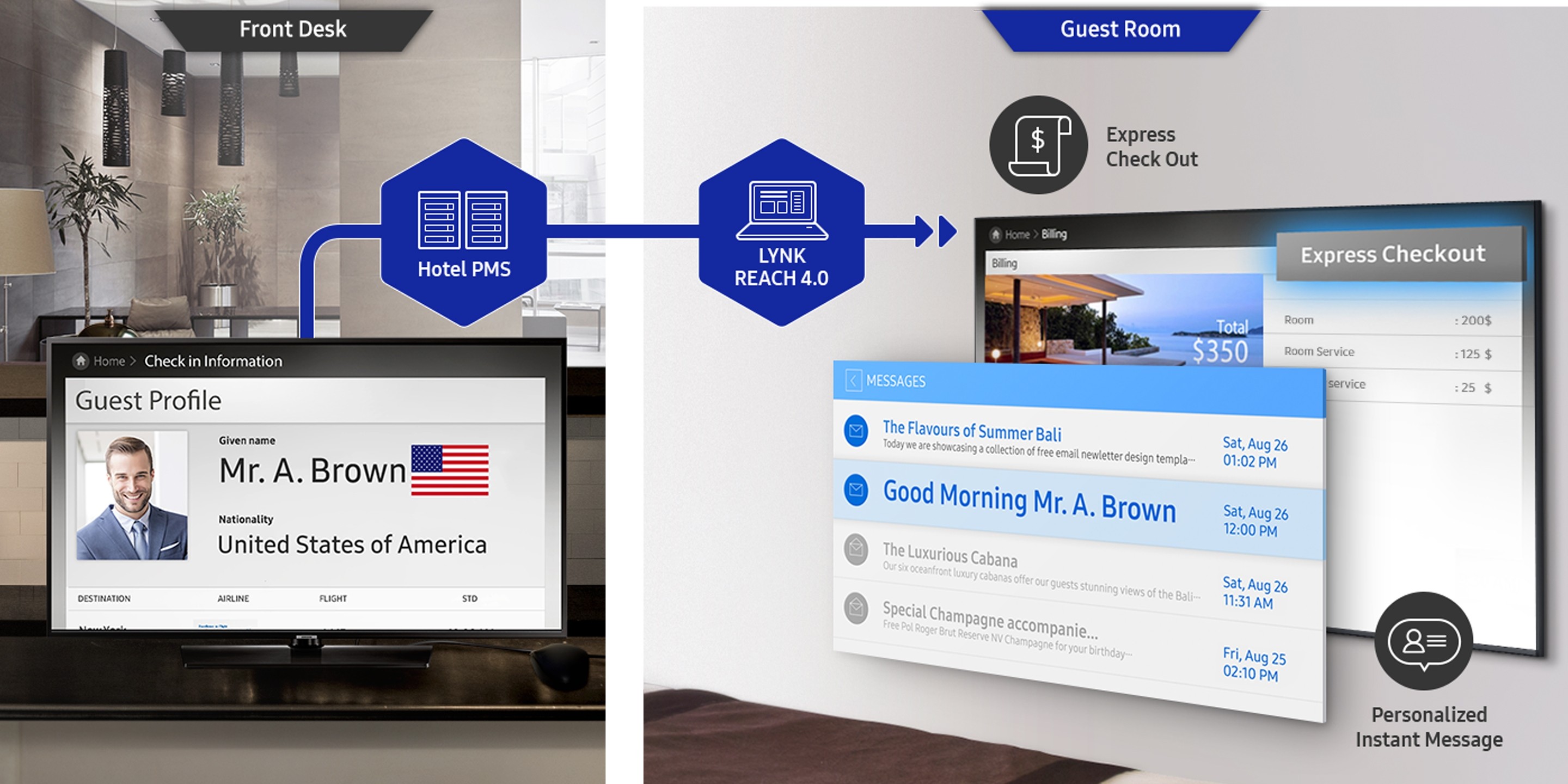Additionally managers can use LYNK REACH 4.0 to deliver customized guest messaging. Upon arrival, guests can receive a personalized greeting along with information about promotions or on-site amenities relevant to their stay. LYNK REACH 4.0 also provides express check-out for added convenience.