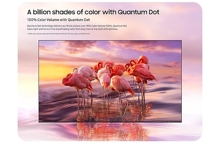 Quantum Dot technology delivers our finest picture ever. With 100% Color Volume, Quantum Dot takes light and turns it into breathtaking color that stays true at any level of brightness.