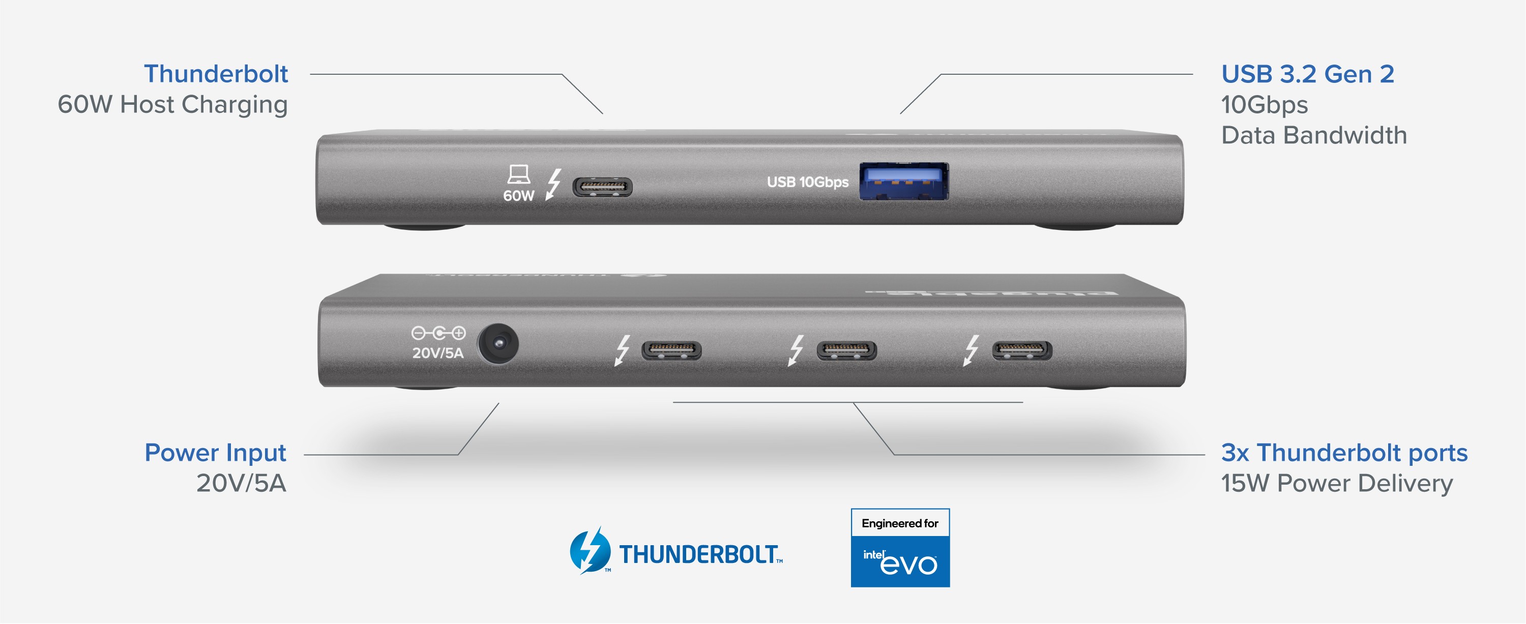 Because the hub is Thunderbolt certified and built around a Goshen Ridge chipset, your USB-C, Thunderbolt 3, Thunderbolt 4, and USB4 devices are supported.