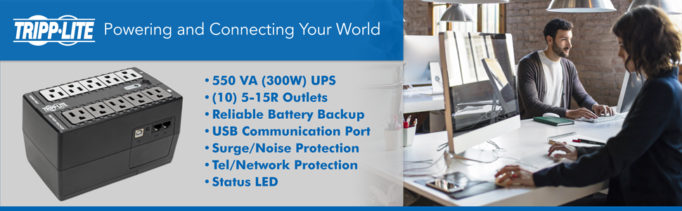 Tripp Lite's ultra-compact standby UPS system fits small spaces and tight budgets. This versatile UPS provides advanced protection for a variety of electronics, including computers, smart devices and audio/video components.