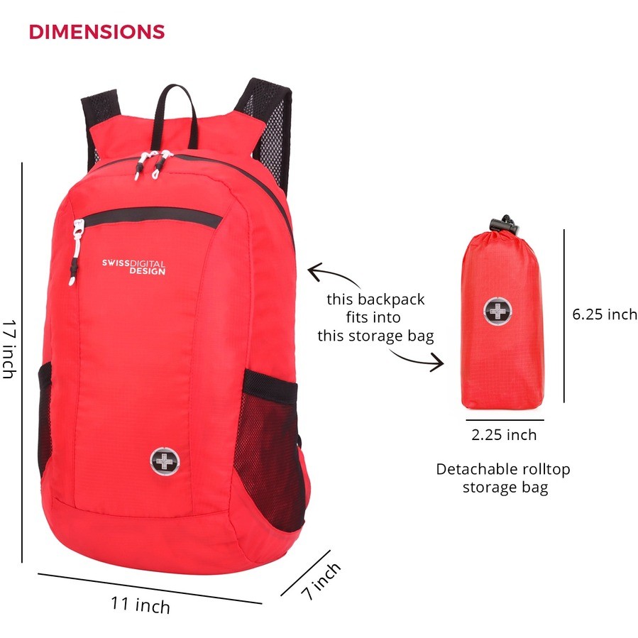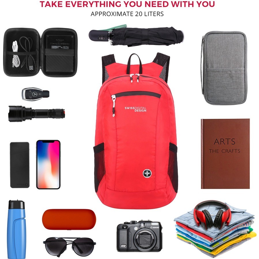 Swissdigital Design - SEAGULL - Ultra Lightweight Daypack for Travel with Large Capacity and Water Repellent Material in Red