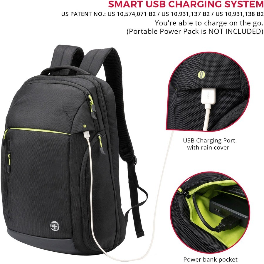 15.6" Laptop Pocket - Large Capacity - 90-180 Degree Pocket - Durable Materials - Patented Smart USB Charging System - RFID Protection - Add-A-Bag System - Designed for Comfort