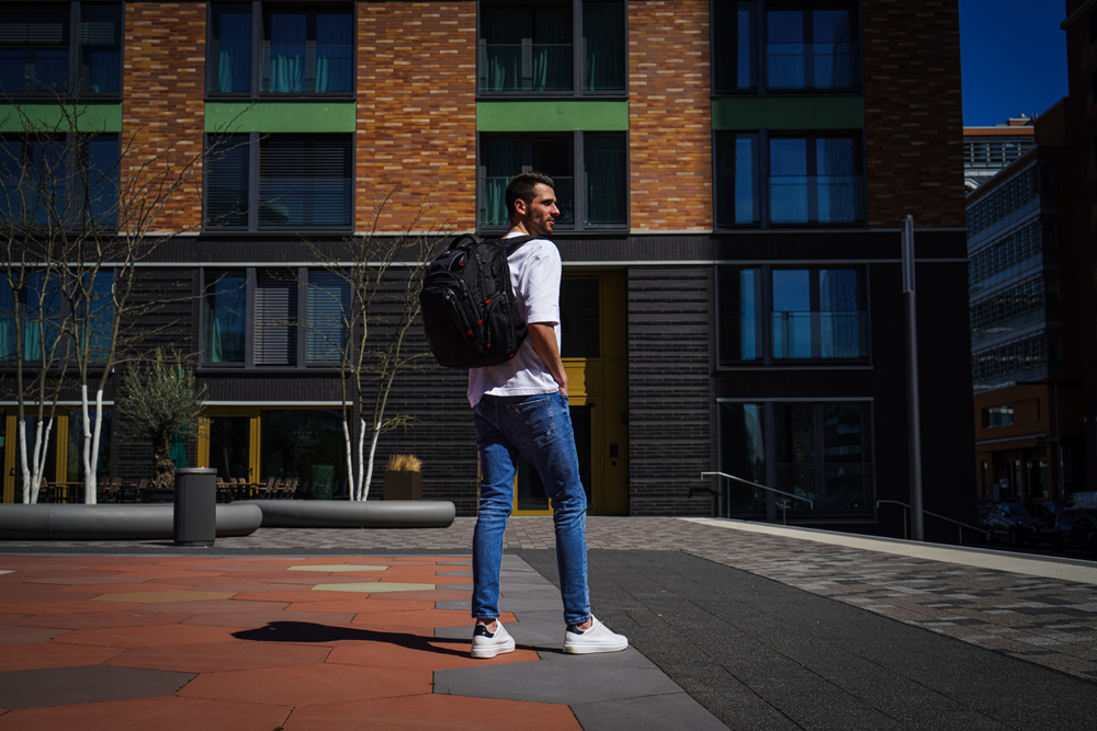 Swissdigital Design backpacks are designed for the new “Commuter Urban Traveler” and built to last. Take your laptop, tablet, cell phones, books, water bottle, mask and other essentials in your backpack for local trips to cafes, hangouts, parks, beaches, lakes, mountain trails or other places.