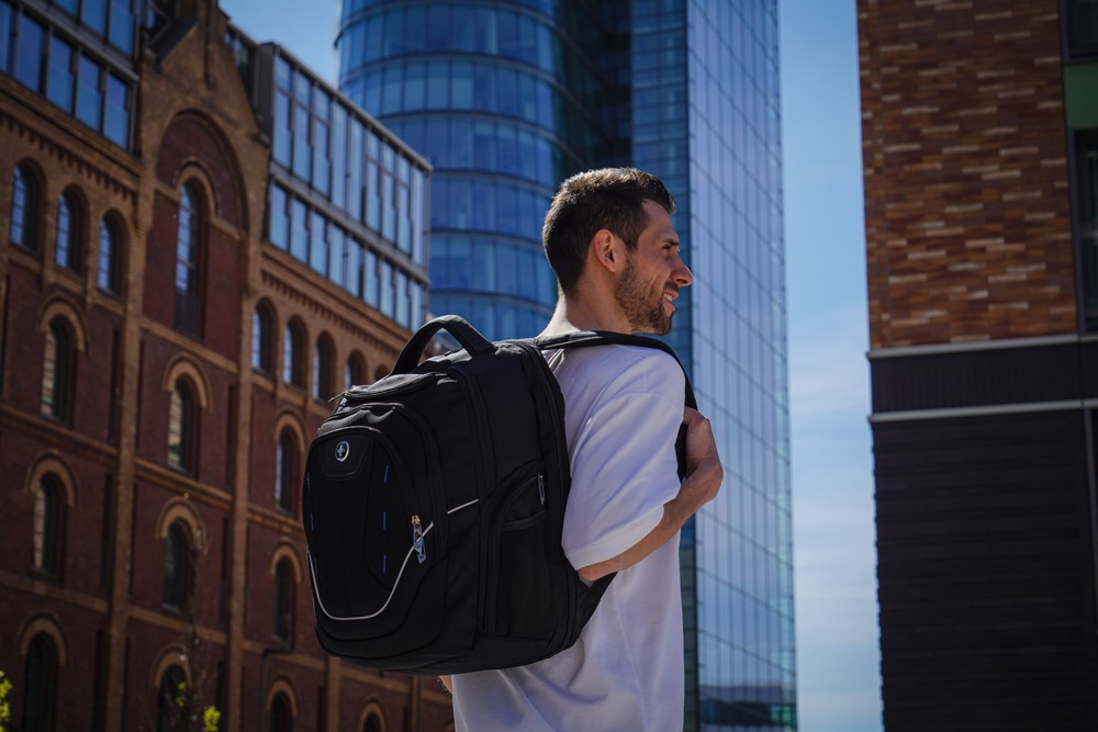 Swissdigital Design backpacks are designed for the new “Commuter Urban Traveler”. Take your laptop, tablet, cell phones, books, water bottle, mask and other essentials in your backpack for local trips to cafes, hangouts, parks, beaches, lakes, mountain trails or other places.