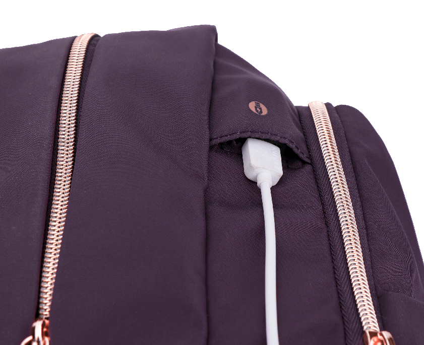Pre-wired USB port on the side of the backpack for quick and easy charging of smartphones or other similar devices (battery not included).